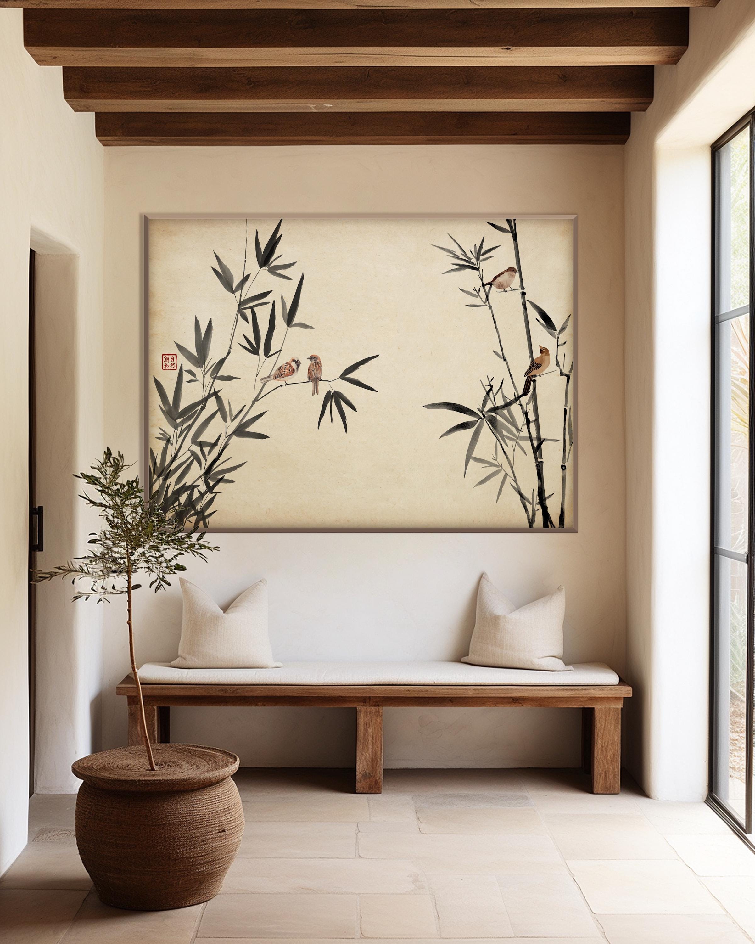 Say hello to our Japanese Sparrows Bamboo Print, printed on 200 gsm matte paper using eco friendly premium inks, assured to delight any room as livingroom, bedroom, bathroom, wardrobe or stairs!